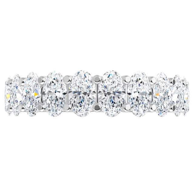 A beautifully handcrafted half eternity ring featuring oval lab-grown diamonds, claw set in 9ct white gold.