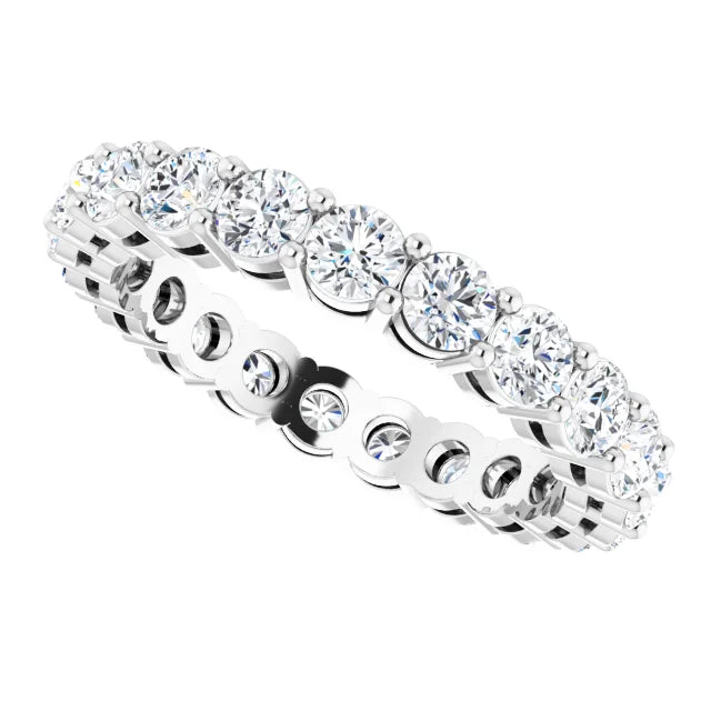 This stunning 2-carat diamond eternity ring showcases dazzling round-cut diamonds encircling the entire band, available in luxurious yellow gold, white gold, or platinum. The sleek, modern design combined with brilliant diamonds offers the perfect blend of elegance and sophistication, making it a timeless addition to any jewellery collection.