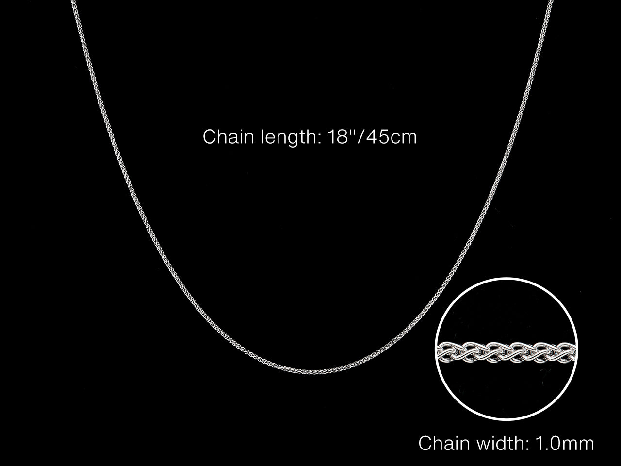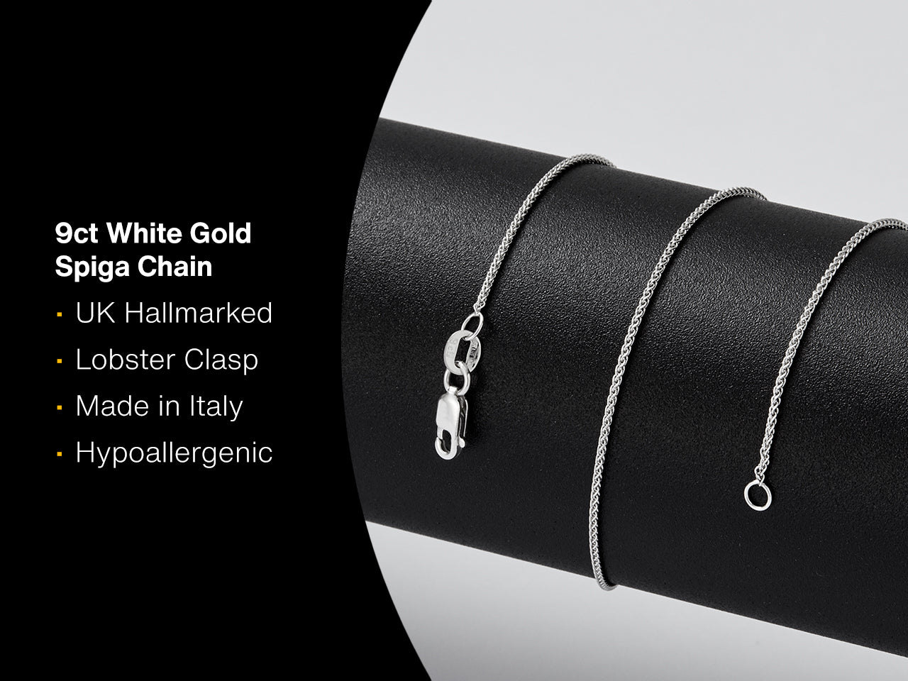 9ct White Gold 1.0mm Spiga Chain -Hallmarked