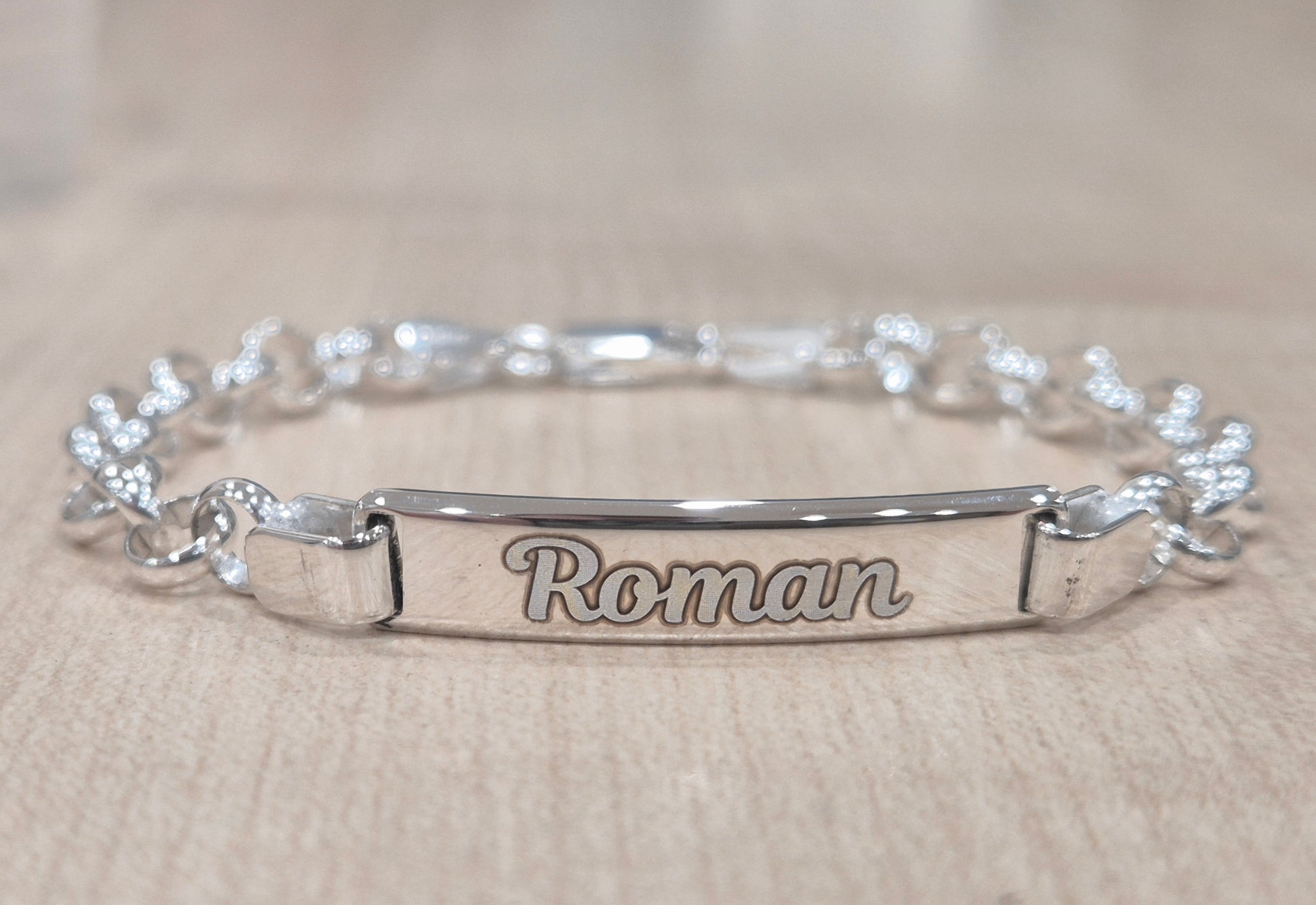 Sterling Silver 925 Baby ID Belecher Bracelet - 6.5 inch, Free Personalisation