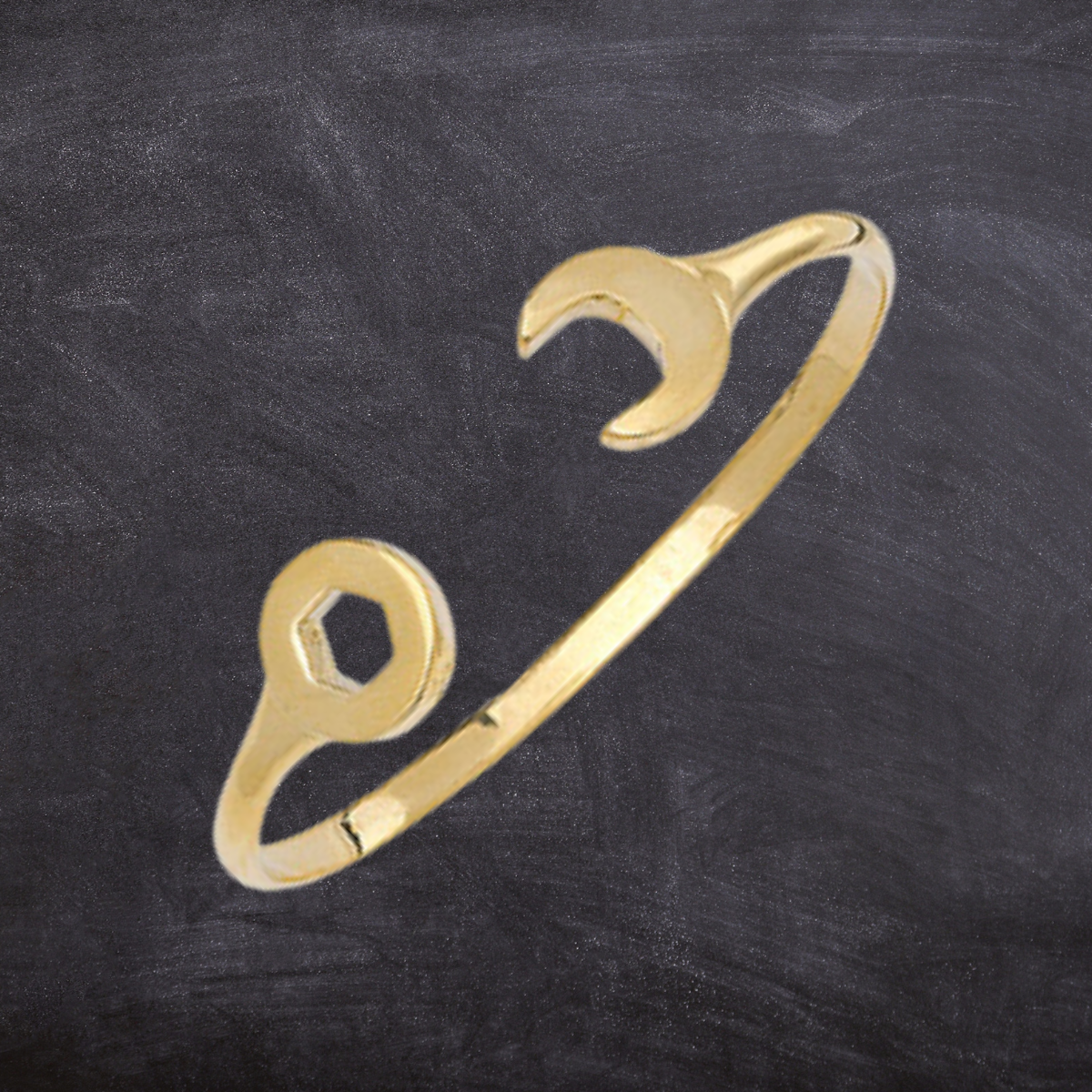 A unique 9ct yellow gold torque bangle designed with a spanner and nut motif for a bold, contemporary look. Weighing 5.50g, this stylish piece is perfect for adding character to any jewellery collection or gifting to someone with a love for craftsmanship and detail.