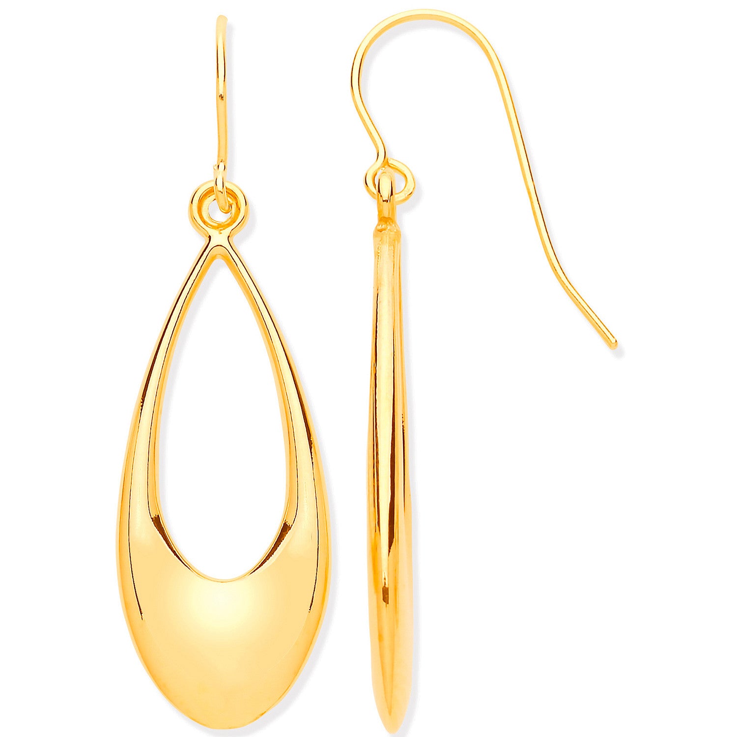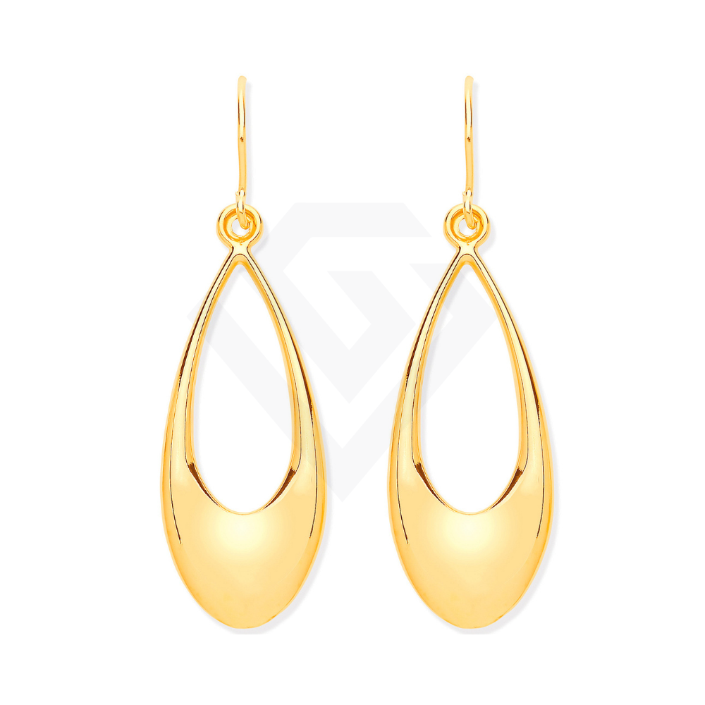 9ct Yellow Gold Hollow Open Drop Earrings: