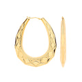 9ct Yellow Gold Diamond Cut Pattern Large Creole Earrings – 55mm x 45mm