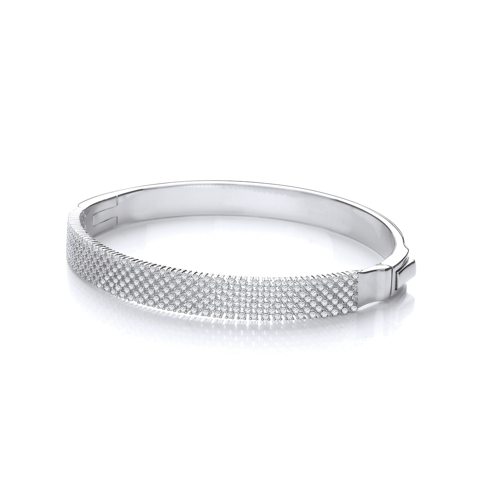 Silver Bangle with Multi Row Micro Pavé Cubic Zirconia