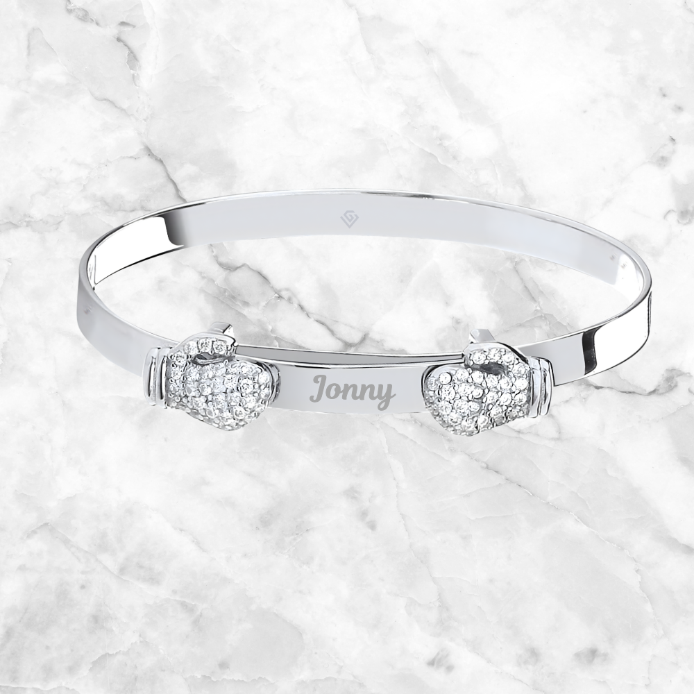 Sterling Silver 925 Personalised CZ Boxing Gloves Baby Bangle