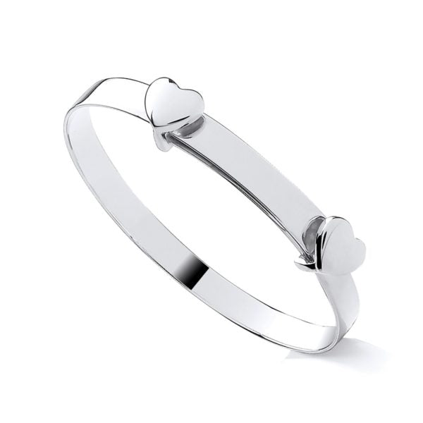 Sterling Silver 925 Personalised Double Heart Baby Bangle