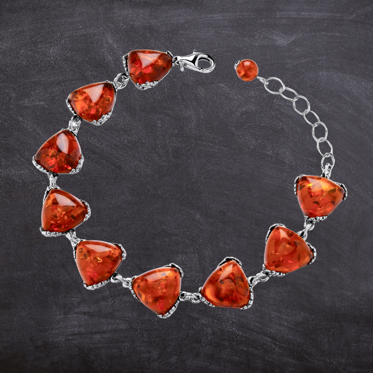 Sterling Silver Natural Baltic Amber Triangular Bracelet