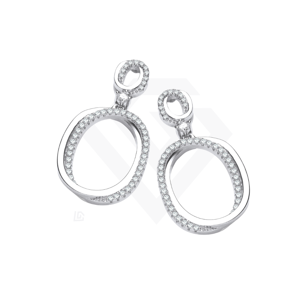 Elegant sterling silver oval drop earrings featuring a sleek open design, beautifully accented with sparkling cubic zirconia for timeless sophistication.