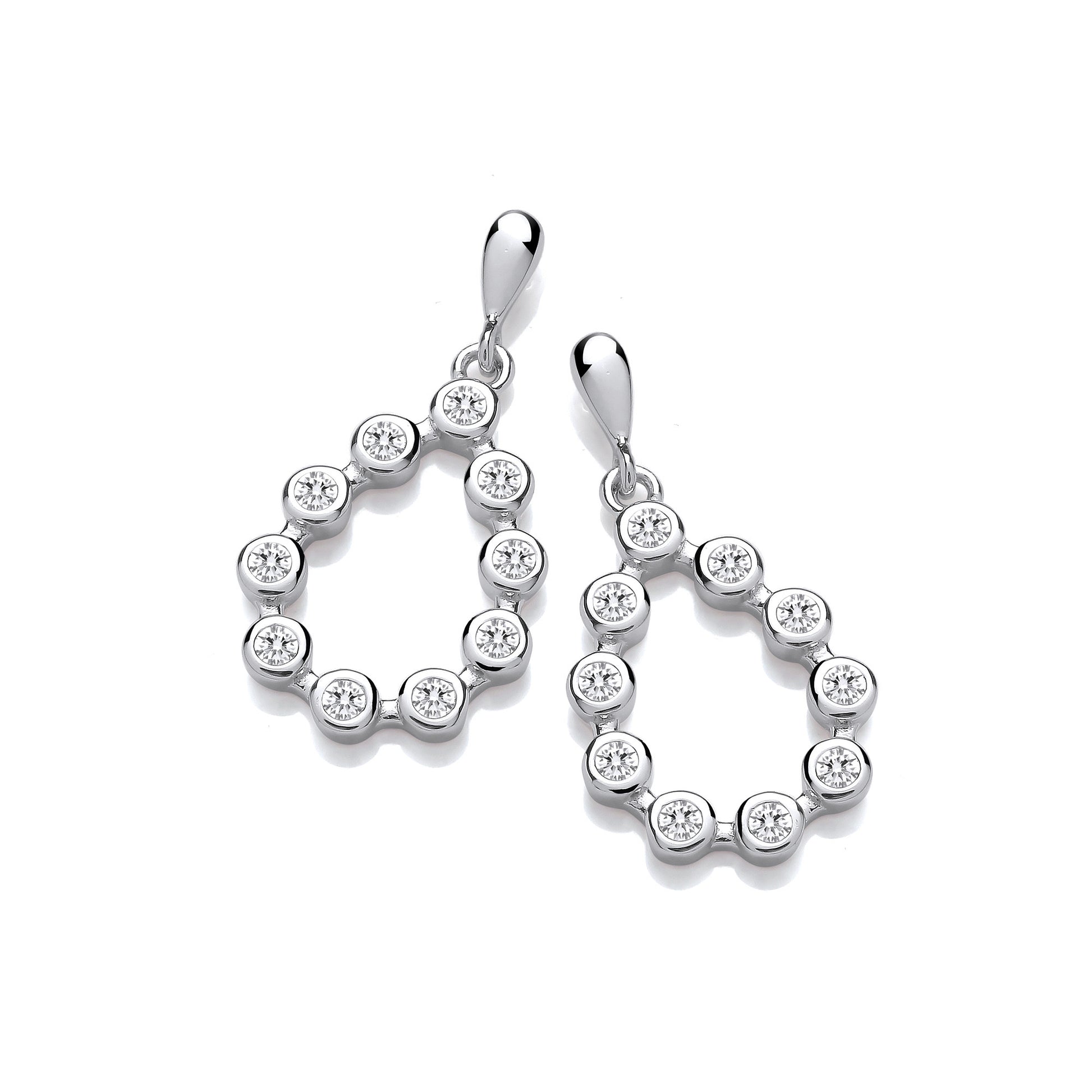 Sterling Silver 925 Rubover Tear Drop Cubic Zirconia Earrings